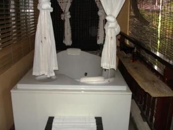 Plantation Villa: 56m2, nicht einsehbarer Garten ca. 30m2, mit Aussenwanne und Liegestühlen. Hinter den Villen zusätzlich ein kleiner Garten mit Aussendusche.