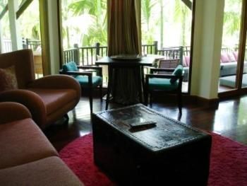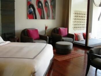 Junior Suite: 50m2 grosse, luxuriös im Thai-Stil mit viel Holz, Sandstein und Seide eingerichtete Suiten mit oben genannter Ausstattung.